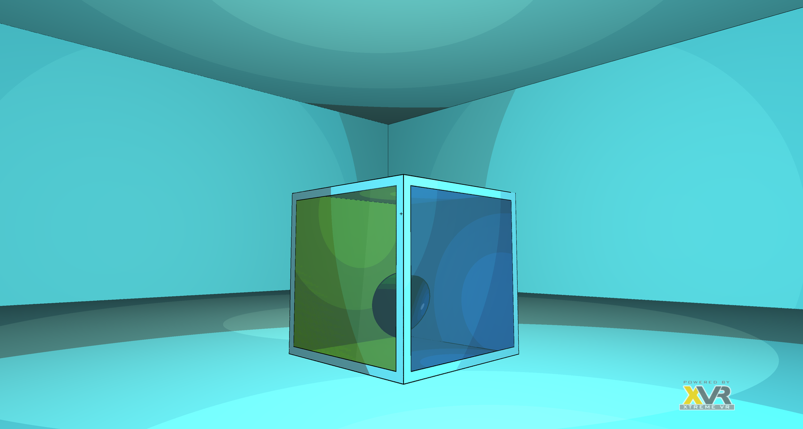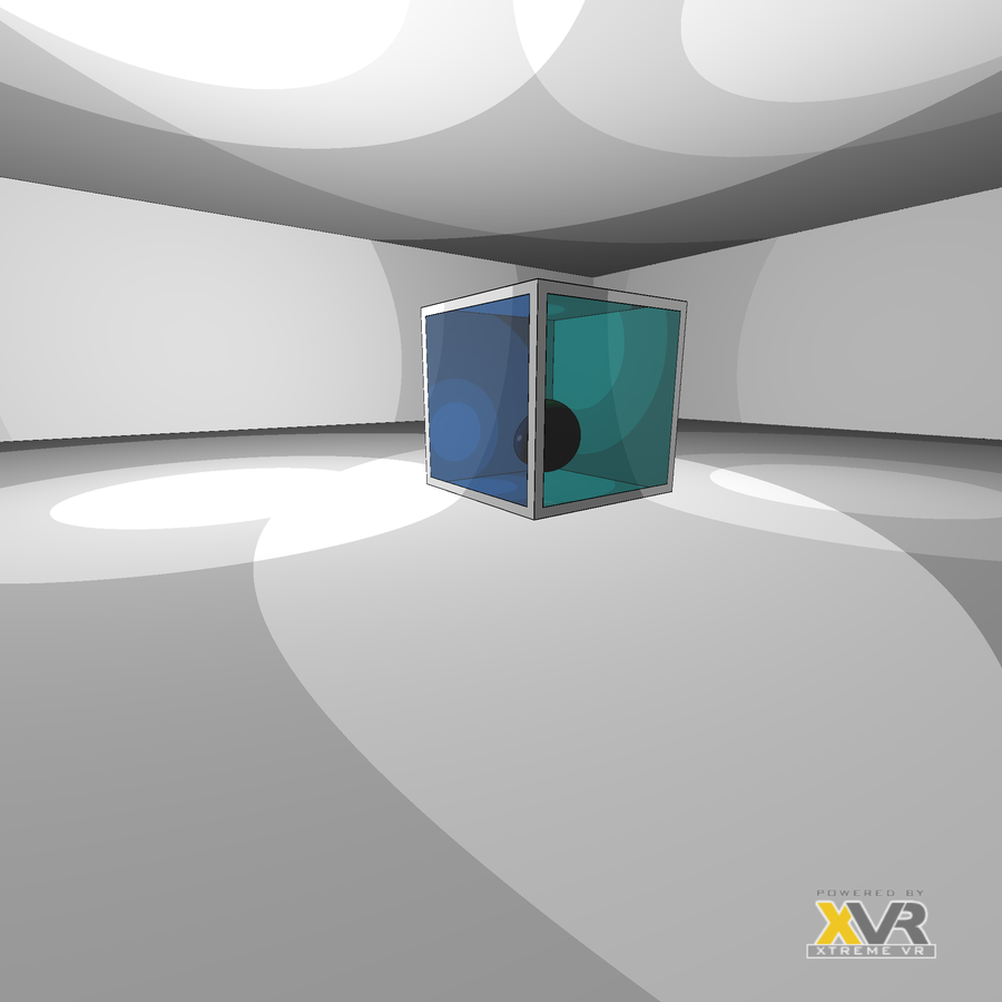 A room with a 4-way portal cube where each side shows a different view